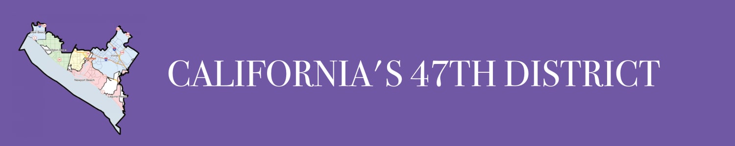 California’s 47th is an open Congressional District in Orange County that includes the Cities of Costa Mesa, Huntington Beach, Irvine, Newport Beach, and Seal Beach, and portions of Laguna Beach, Laguna Hills, and Laguna Woods. Incumbent Katie Porter is vacating the seat to run for U.S. Senate.