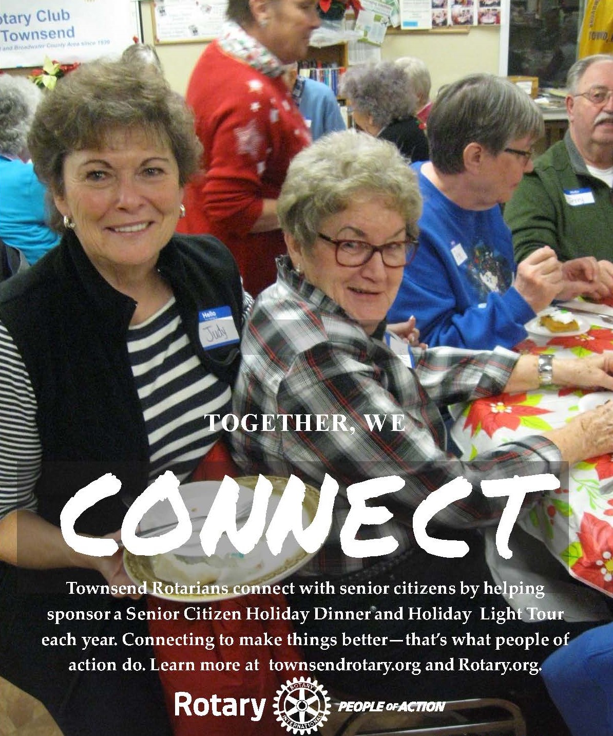 In mid-December, the Rotary Club of Townsend, and the Broadwater County Lions Club co-sponsor a Senior Citizen Holiday Dinner with all the trimmings at the Townsend Senior Center followed by a tour of the Holiday lights throughout town. Townsend School District #1 and Billings Clinic Broadwater donate the use of their buses for the tour.