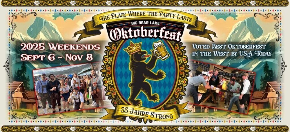 Four general admission tickets Big Bear Lake Oktoberfest weekends September 6-November 8, 2025.