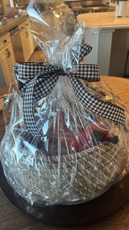 Basket contents include, Gentlemen's Hardware BBQ Tool, BBQ care kits, Meater Mitt, Stout BBQ Sauce, Quick Dry Towel, Zesty BBQ Seasoning, John Wayne All American Grilling Book, BBQ Spice, and Jellycat Chili Pepper.