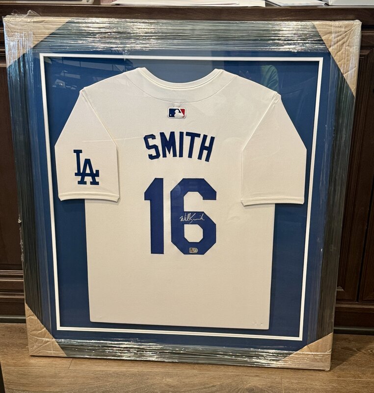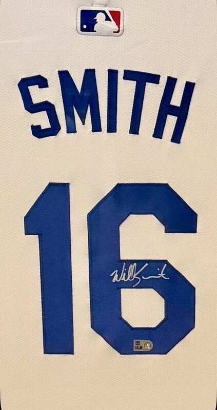 Autographed jersey fromLA Dodgers all star catcher, Will Smith. Professionally framed with Dodger blue and white matte and black custom frame. This is an official MLB memorabilia and has the MLB hologram with a registered serial number of authenticity.