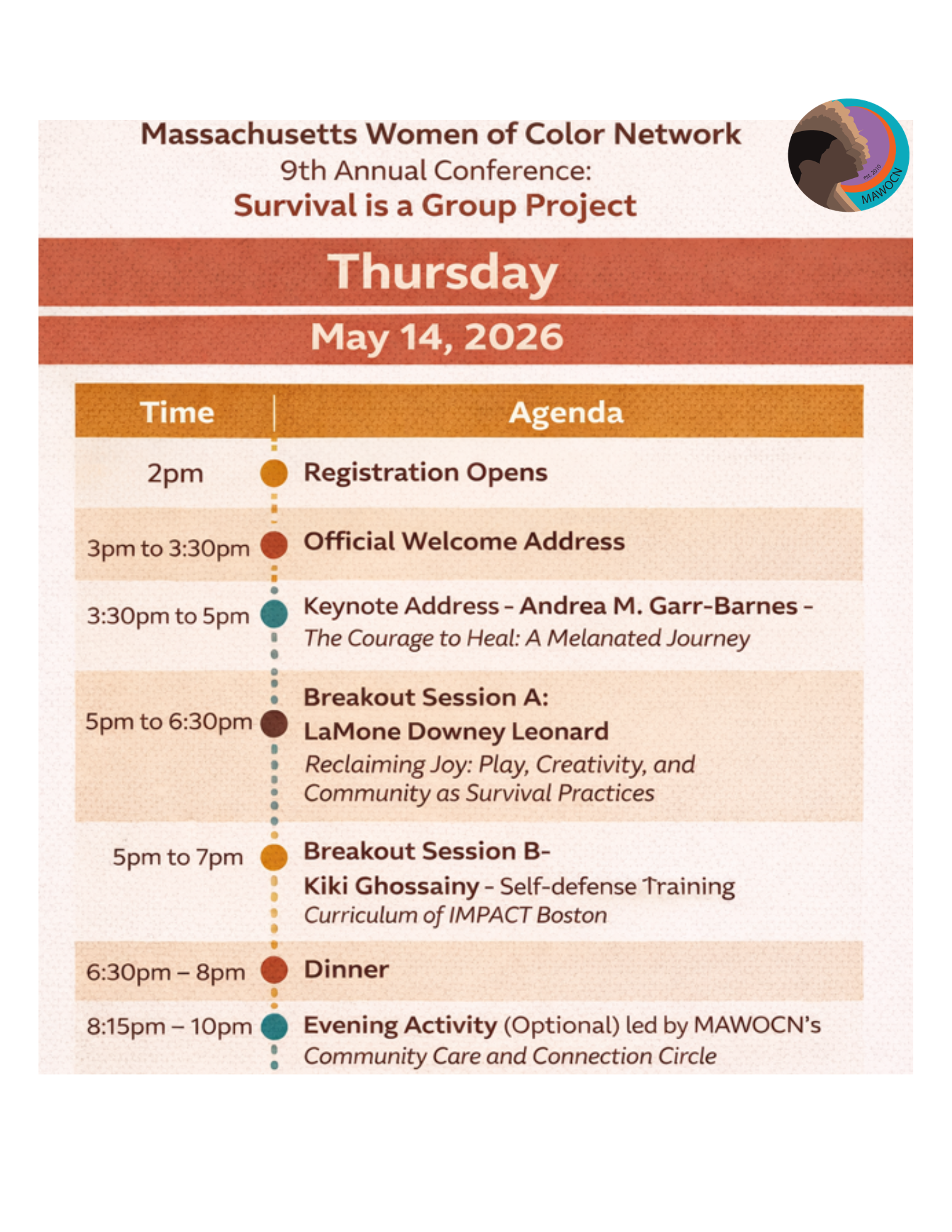 Inspired by the legacy of rent parties and other mutual-aid traditions, the Massachusetts Women of Color Network’s 9th Annual Conference centers the ways communities have long shared resources, cared for one another, and created joy in the face of hardship.