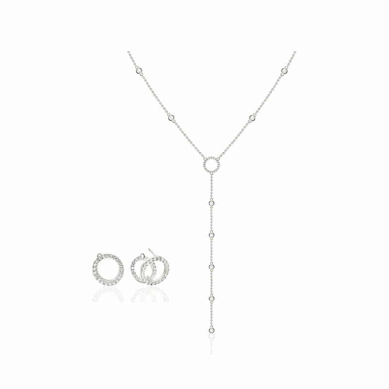 Add glamor to your day with these lovely jewels that radiate timeless elegance. Beautifully designed in California and finely crafted in solid 925 sterling silver with world’s most desirable simulated diamonds ever created! The lariat features an 18-inch chain around the neckline and the height is adjustable. Micro-pavé zirconia stones adorn the lever back earrings inside and out. Hypoallergenic. Outstanding packaging for gifting or to hold your keepsakes! Created exclusively for the philanthropic community.