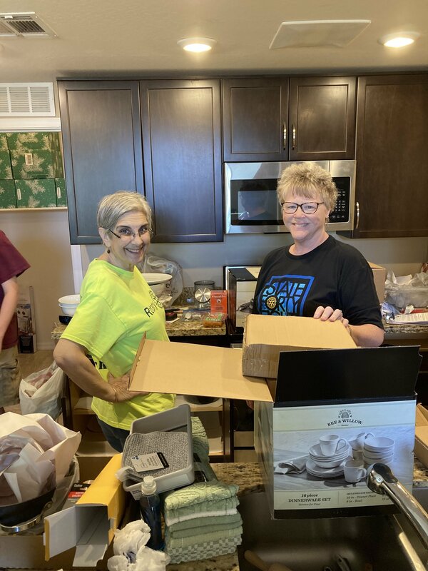 12 Rotary clubs and groups from Chandler, Mesa, Gilbert, Queen Creek, and the ASU Rotoract Club met on Friday to help move donated furnishings. food and other items into an apartment in Chandler to help an Afghanistan refugee family of seven begin settling into a new home in Arizona.