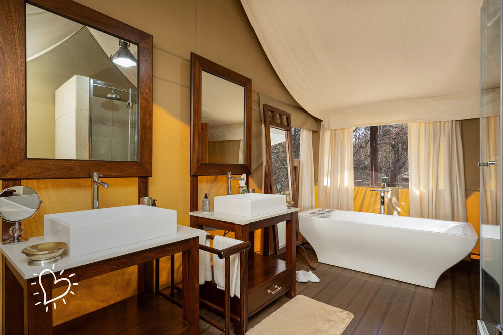 - Unwind in a deluxe tent with hotel-style amenities and a private terrace