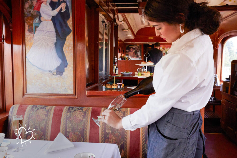 Indulge in a mouth-watering 3-course lunch or dinner as you head towards St. Helena or Rutherford and back. Take a peek behind the curtain with the opportunity to wander the train and kitchen.