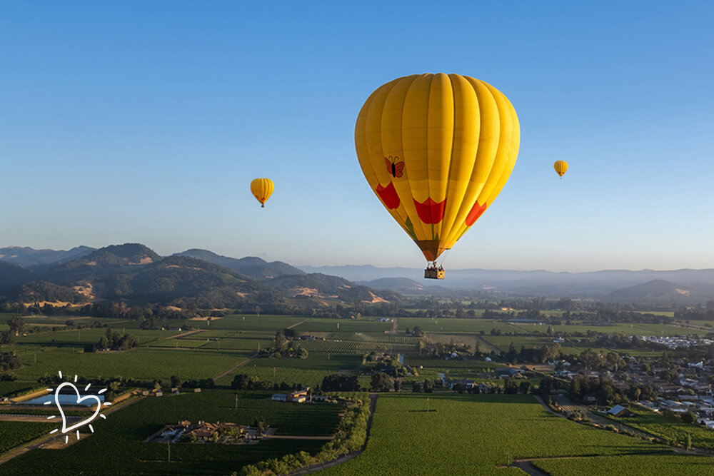 - Soar over Sonoma's vineyards on a hot air balloon tour with Champagne toast