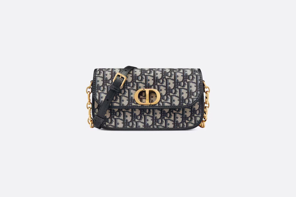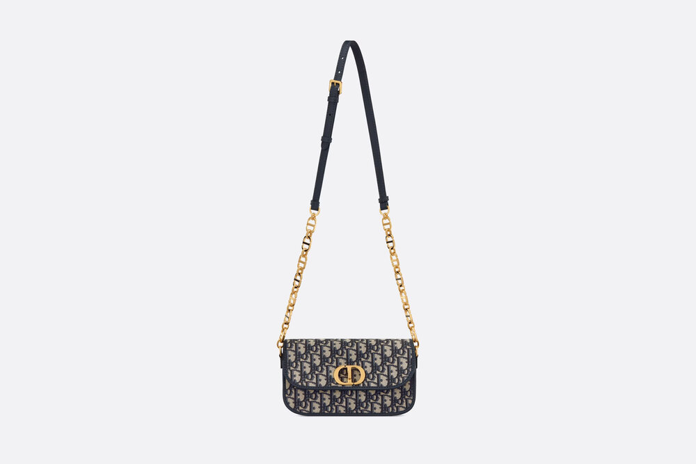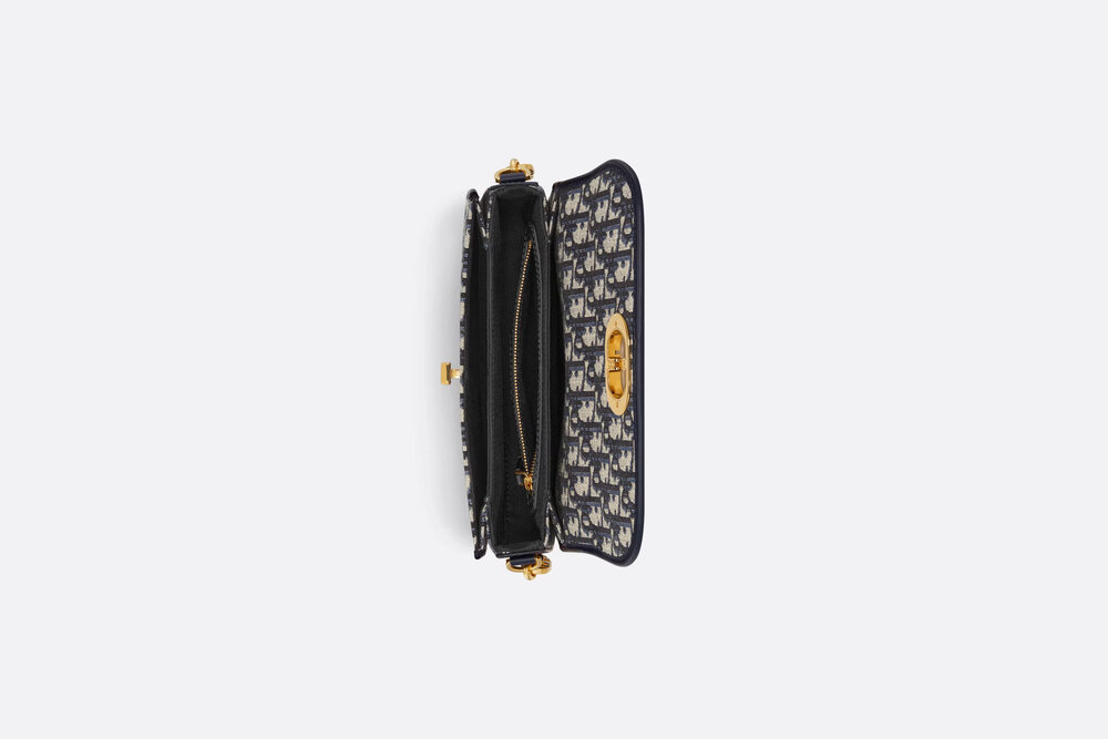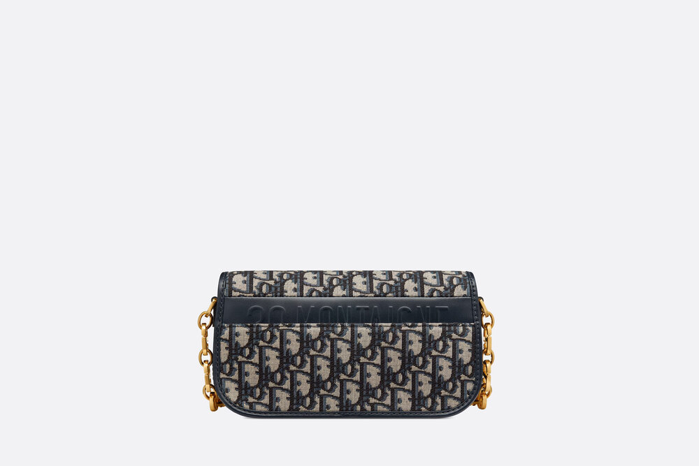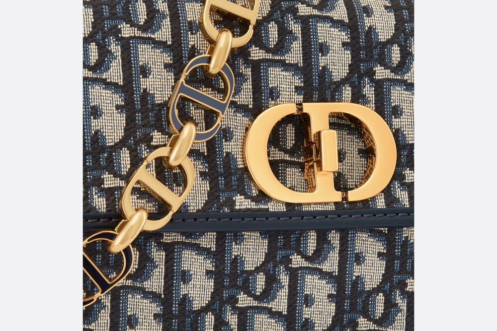 The 30 Montaigne Avenue bag enriches the emblematic line with a timeless and elegant format. Crafted in blue Dior Oblique jacquard canvas, the rounded flap with delicate curves is punctuated by an aged gold-tone metal CD clasp, inspired by a Christian Dior perfume bottle. Other neat details, such as the 30 Montaigne signature embossed on the back and the signature chain alternating links in gold metal and tone-on-tone enamel matching the color of the leather, complete this model. This gusseted bag, with a spacious and refined design, can be carried by hand, on the shoulder or crossbody.