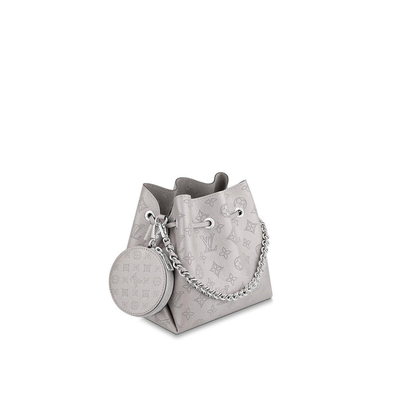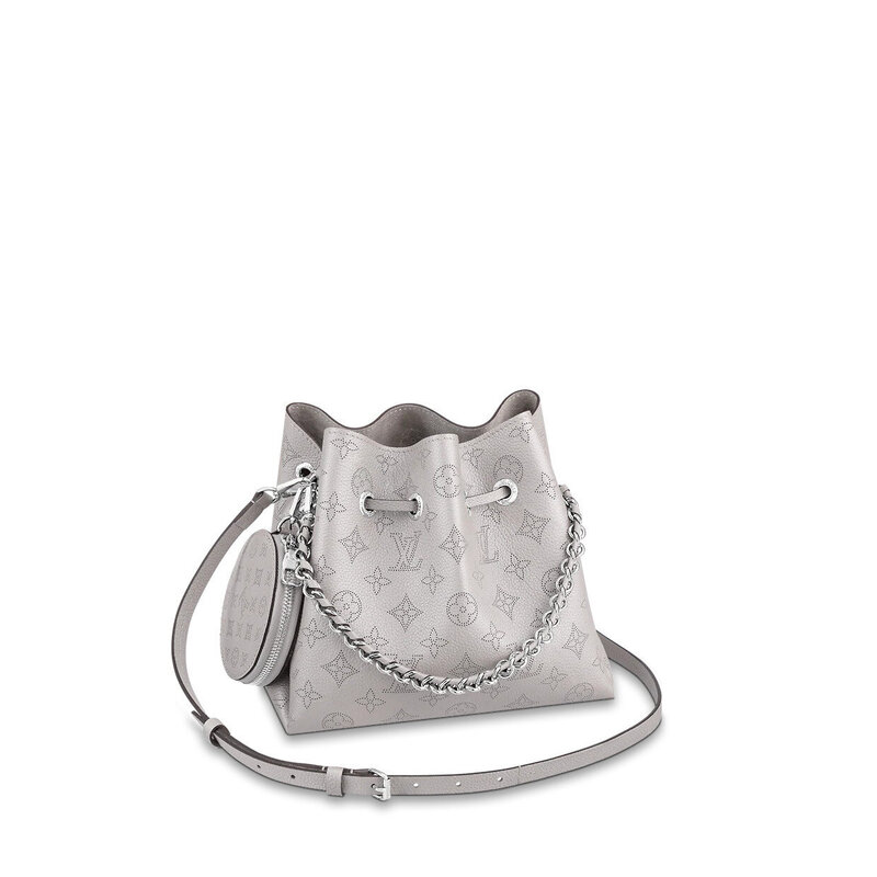 The Bella bucket bag is made from Mahina calf leather with a metalized aspect. The bag’s small size, perforated Monogram pattern, and attached round coin purse make it modern, desirable, and trendy. Its leather and metal braided handle enables a hand or elbow carry while the removable and adjustable leather strap has shoulder or cross-body wear. It completely sold out in the United States and the rest of the world.