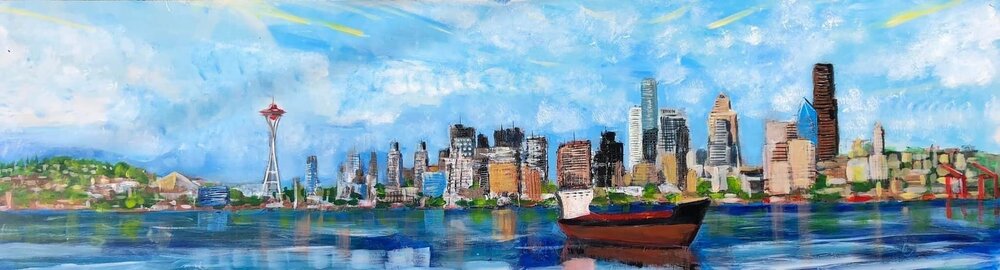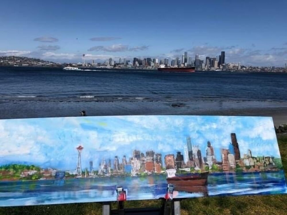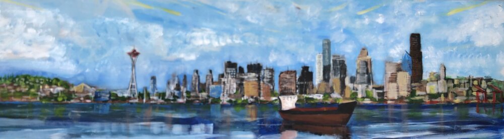 Original Painting. Made on location in West Seattle. Acrylic on Birch plywood. 20”x60”