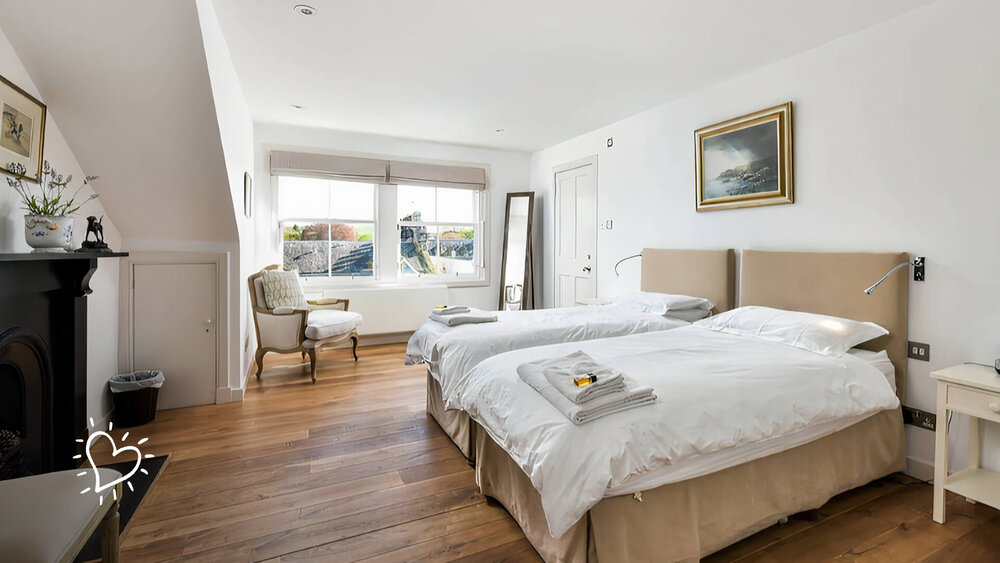 Natural light floods the open-plan living space, immersed in beach and golf course views. Your private balcony is perfect for morning coffee, boasting panoramic views of St. Andrews Old Course and West Sands Beach. Find luxury in every detail, from convertible Superking/twin-size beds to period-feature accent fireplaces.