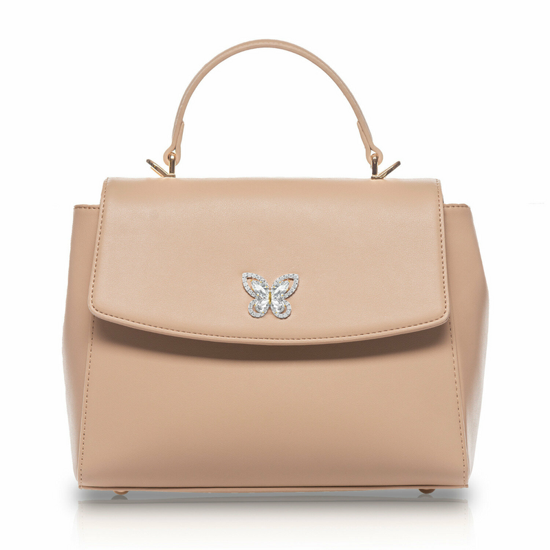 Beige Handbag with Butterfly Jewel