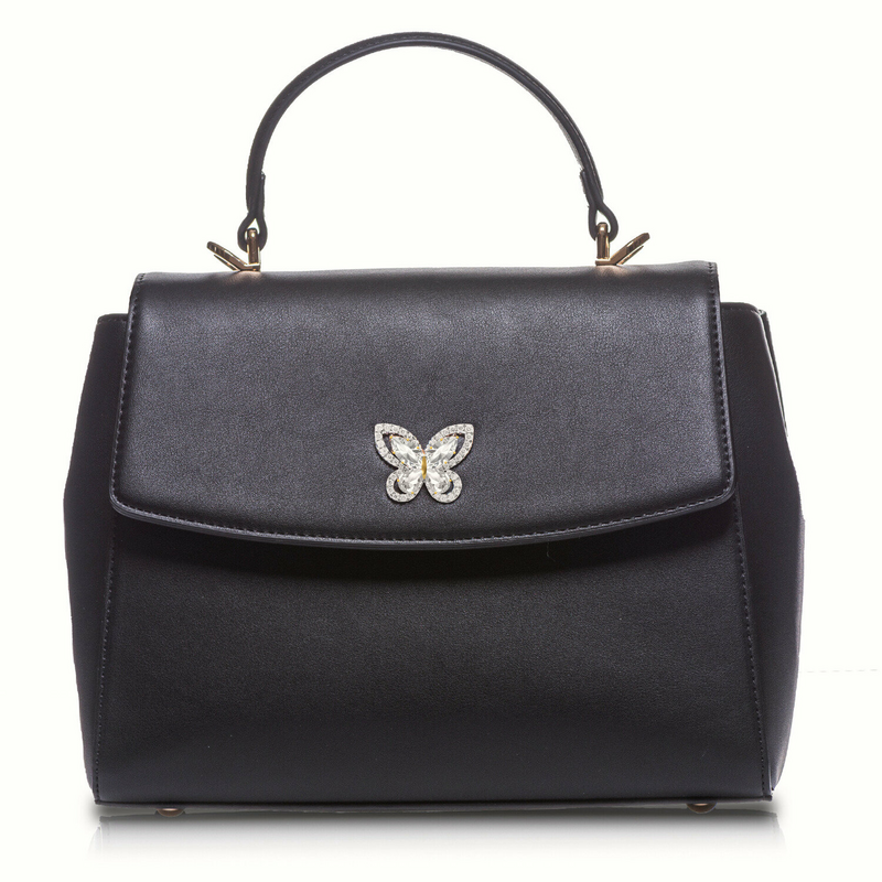 Black Handbag with Butterfly Jewel