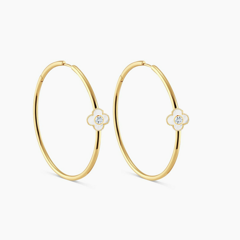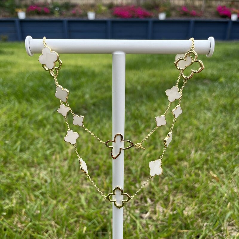 White Flowers and Butterflies Necklace and Earrings in White Gold