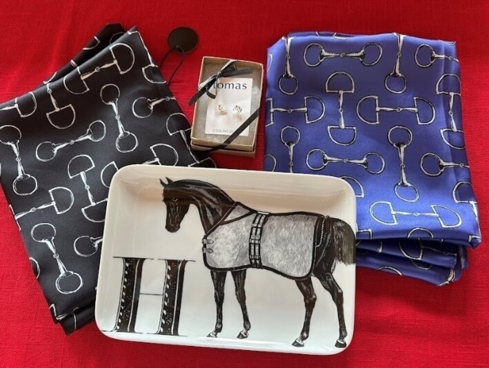 Add a touch of timeless equestrian charm to your wardrobe and home with this beautifully curated collection. This set includes two stylish equestrian scarves—perfect for elevating any outfit—along with a stunning decorative tray ideal for entertaining or display.