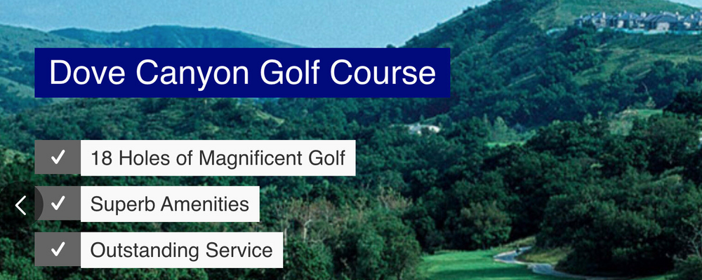 Host to the 1993 Inaugural Pro Stakes Championship, a unique event attracting players like Chi Chi Rodriguez, Fuzzy Zoeller, Peter Jacobsen, and Craig Stradler and a field of pros in a two-day battle over 0,000 in prize money, Dove Canyon guarantees to deliver a memorable golf experience which promises to be as visually stunning as it is challenging. After your game, relax in the spectacular clubhouse inspired by Frank Lloyd Wright with its soaring wood-beamed ceilings and Honduran mahogany paneling. Less than an hour away from Dove Canyon in Los Angeles, California, one of the leading world centers of entertainment, culture, fashion, science, and sports - the second most populous city in the United States and home to such well-known attractions as Hollywood, Beverly Hills, and Rodeo Drive. World-class entertainment is a short drive away.
