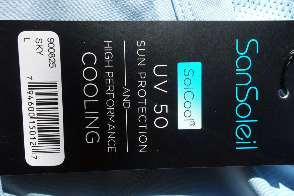 UV 50 Long Sleeve Golf Tops for Men from SanSoleil. SanSoleil's newest fabric, SolCool, reduces body temperature by five percent. SolSport combines the finest new technology fabrics and creates which offers permanent cooling and Perfect UV 50 protection.