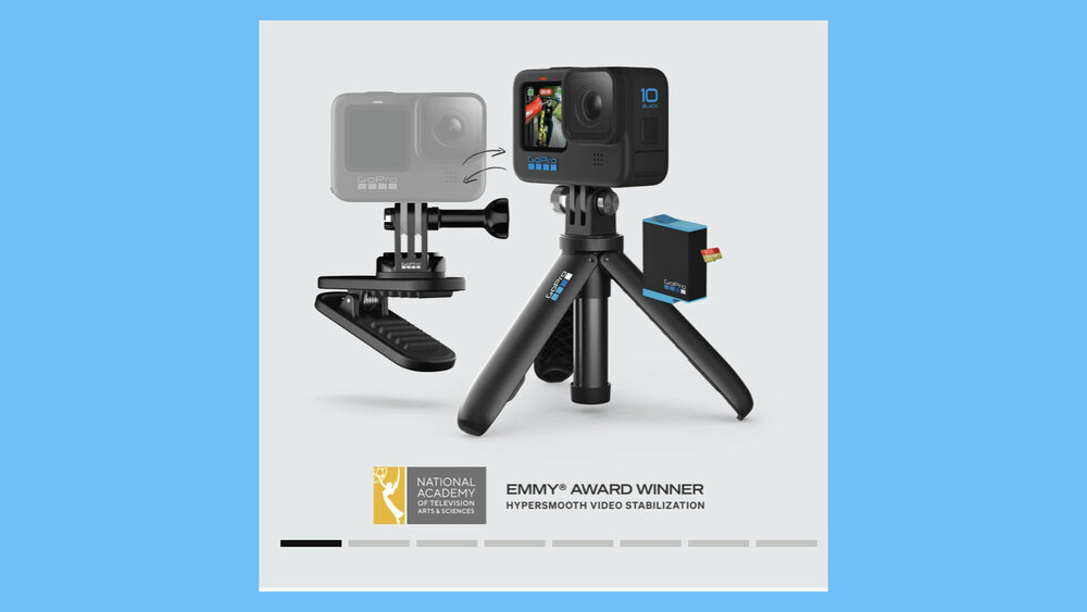 2X Speed with Ease: all-out speed and ultimate ease, now in the most powerful GoPro ever. Powered by the revolutionary new GP2 processor, HERO10 Black shoots 5.3K video with double the frame rate, 23MP photos, enhanced low-light performance and game-changing HyperSmooth 4.0 video stabilization in all modes. On top of all that, HERO10 is cloud connected—so the moment you charge it, your footage is automatically uploaded to the cloud. Accessories bundle includes: magnetic swivel clip, spare battery, shorty, 32GB SD card, and camera case.