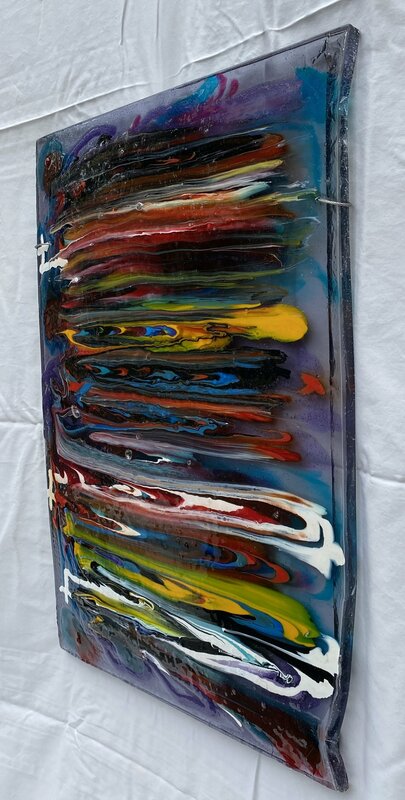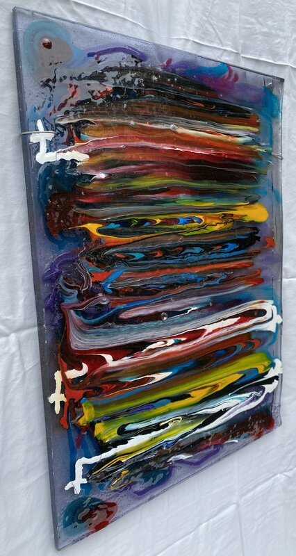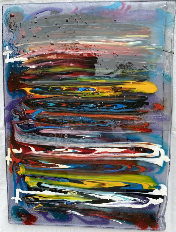 "My art compositions are made of recycled plastics and found objects to present a panel that is in between abstract and figurative, so that what the viewer sees comes from their own imagination (i.e., pareidolia). During the process, I can arrange and melt the plastic with some control and intuition, but with so many variables my result out of the oven is always a surprise. My design gets redesigned. The resin melts itself to sleep and in a dream resolves itself to the image that the future viewer needs to see. My art crosses over a boundary as if it goes to another world as a question and comes back as an answer."