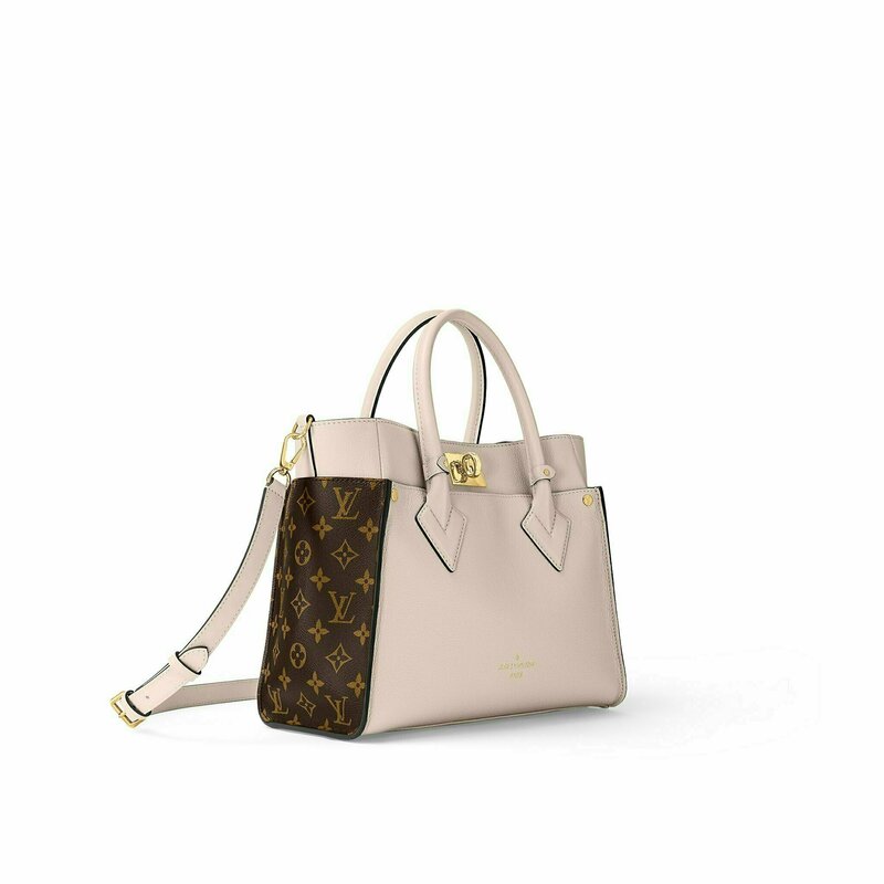 The On My Side MM tote bag is fashioned from an elegant combination of small-grained calf leather and emblematic Monogram canvas. The large outside pockets in contrasting canvas create a bag-in-a-bag look. The roomy interior can easily hold everything needed for a day at the office while the adjustable strap makes for practical cross-body carry.