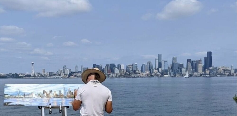 Original Painting. Made on location in West Seattle. Acrylic on Birch plywood. 20”x60”