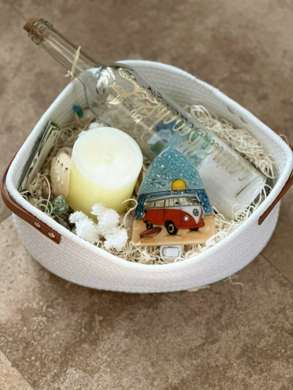A basket full of the perfect decor for your beach cottage!