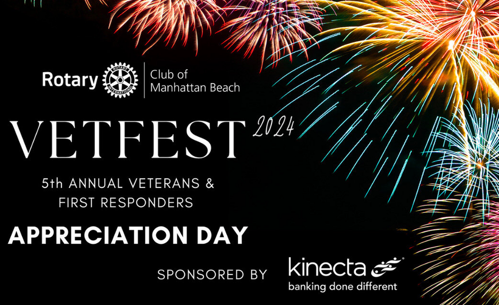 You and 9 friends will have a VIP experience including table, champagne & wine table service to our 5th annual Vetfest. Join the Manhattan Beach Rotary and Kinecta in celebrating VetFest- a day to honor and recognize veterans, first responders and active military.