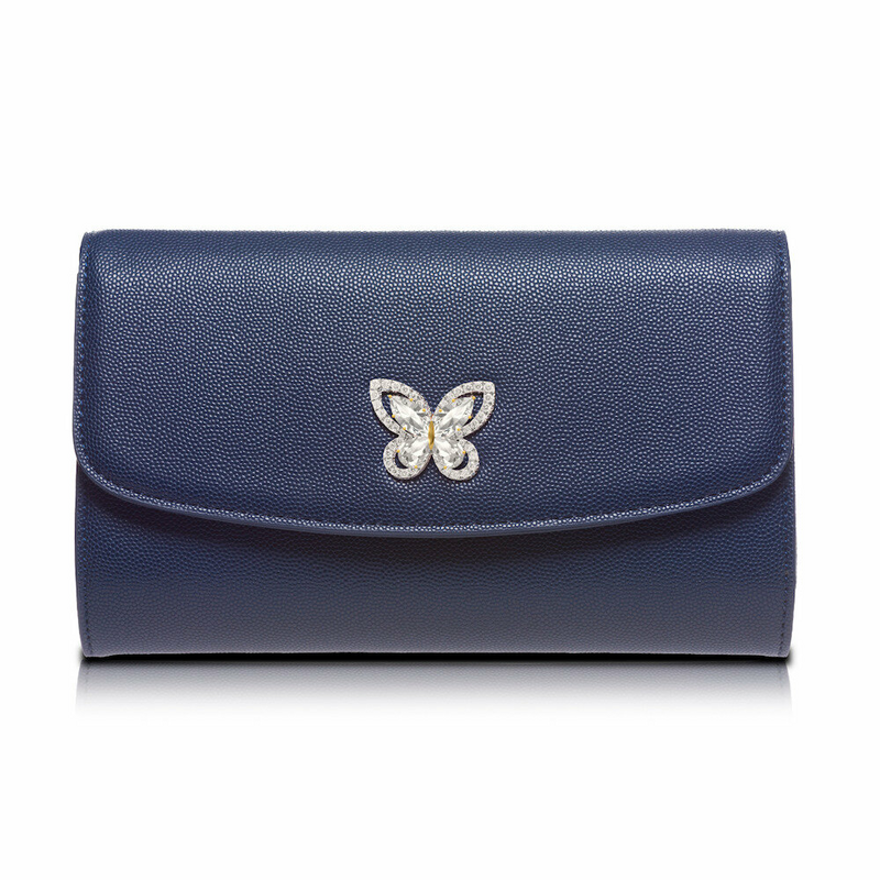 Limited edition and created exclusively for the philanthropic community, this stunning clutch was beautifully crafted in Italy with the highest quality materials and accessories. The bejeweled clasp is a true masterpiece, made with authentic Austrian crystals, which give an abundance of sparkle. The butterfly is the messenger of COURAGE, FREEDOM, and HOPE - the beautiful story is printed inside of the packaging.