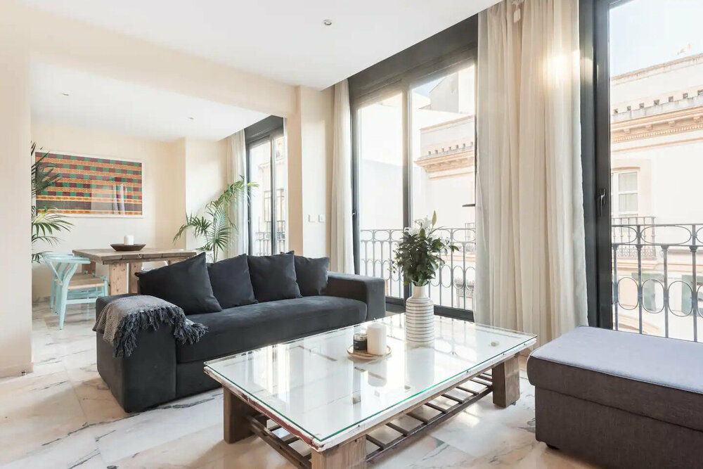 Located in downtown Seville, this vibrant property features two bedrooms and two bathrooms, comfortably sleeping four adult travelers. Being centrally located, this residence is ideal for an easy stroll downtown to one of the many local wine bars or culinary masterpieces Seville has to offer.