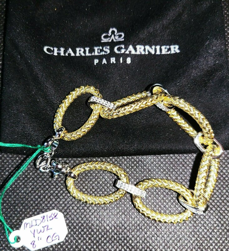 Beautiful and chic gold link bracelet with sparkling cubic zirconia stones, designed by Charles Garnier of Paris, is a stunning addition to your jewelry collection. It is perfect for both casual and formal occasions and makes a stylish statement wherever you wear it. A truly timeless piece that will never go out of style.