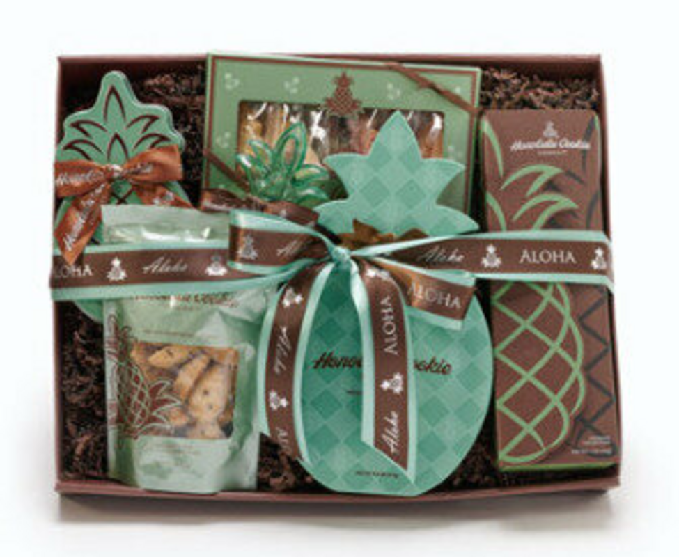 A tray filled with--- Aloha Window Box 16 cookie w/ 5 flavors, Aloha Surf Board 15 cookies w/6 flavors, Aloha Tim/sm 6 cookie w/ 5 flavors, Mini Bites snack Pack 7 oz approx. 37-40 mini bites