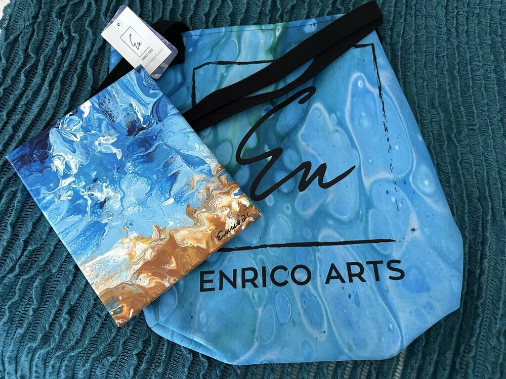 Logo Beach Bag and Acrylic Painting