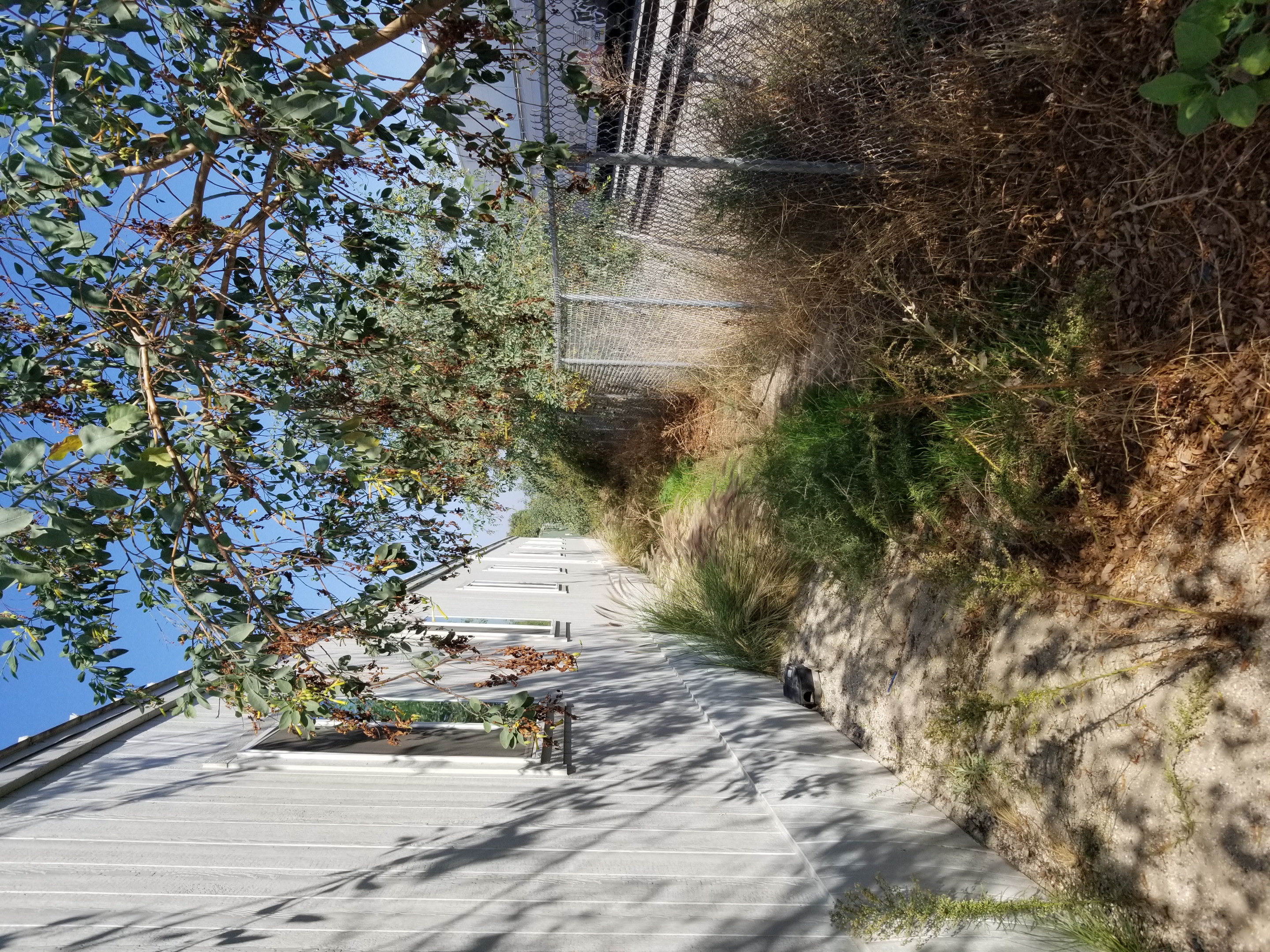 Our primary focus on November 20, 2021 will be to do the weeding around the back of the property (see the photos below). Weeds are growing between the modular units and the fence. These weeds attract animals and make the upkeep of the fence difficult. The primary goal will be to clear the area. The Rotary Club of Anaheim is arranging for some professional help to come in prior to the November 20, 2021 event. They will do some of the weed whacking and maybe cut some of the branches leaning into the property. During the event, volunteers will clear out what has been cut and continue with any weed whacking and branch removal that remains.