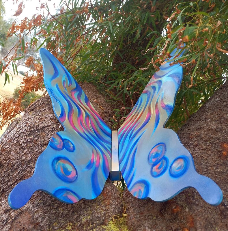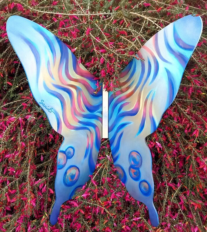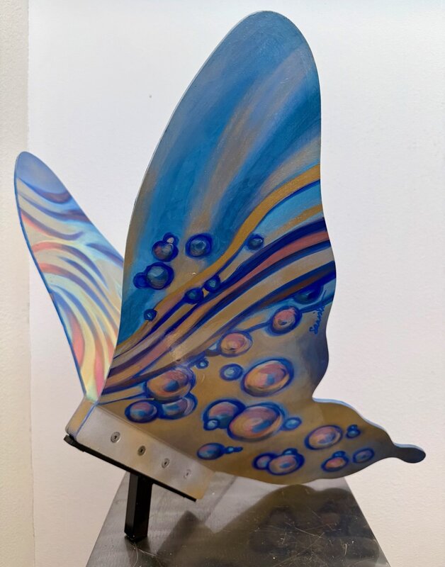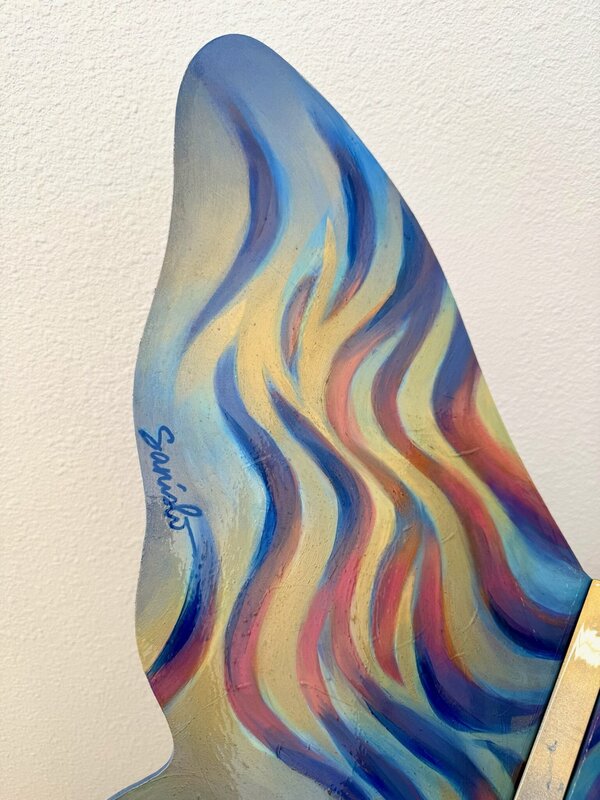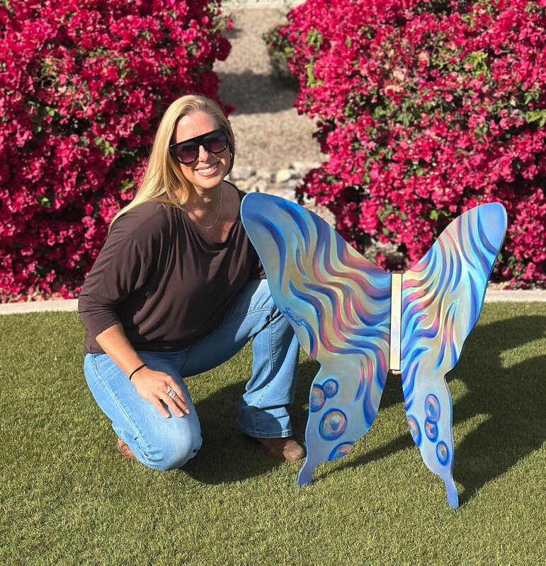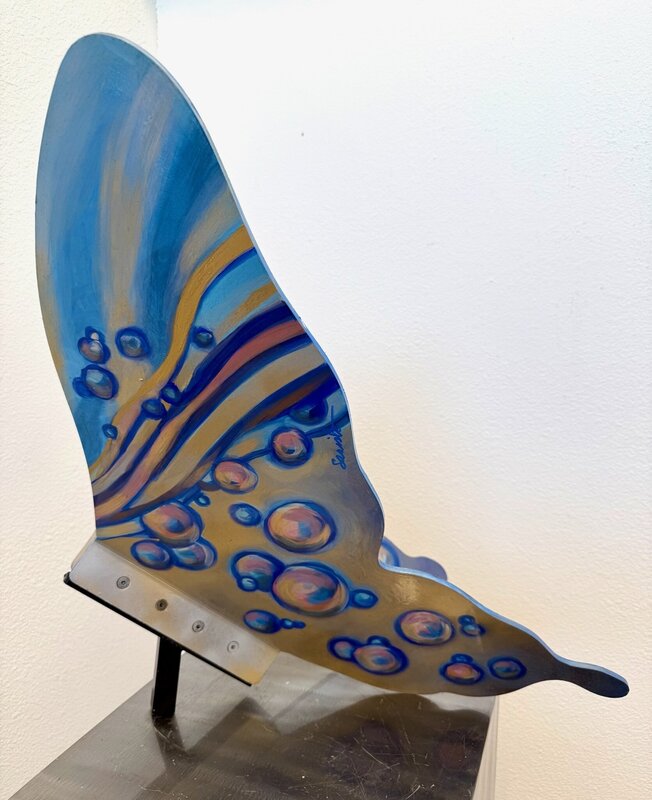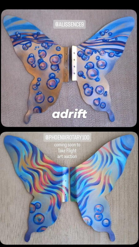 Inspired to make designs using different colors and themes than the previous years. Alisson hadn't done much with blue, and lately discovered she liked painting bubbles. She liked the metallic effects from the first year with "American Beauty" and chose to invent an underwater/surface design incorporating those elements. She had a lot of fun painting "Adrift" until realizing the need to make cutouts of the bubbles in order to spray paint over them - and ended up cutting a lot of stencils again! The fun part of these projects is the unplanned steps encountered that result in methods she normally wouldn't use in other painting projects. Alisson really enjoys experimenting and appreciates the flexibility given that allows exploration. Born and raised in St. Petersburg Florida, my artwork is greatly influenced by beautiful skies, the ocean and nature. I earned my BFA in illustration at Arizona State University. My artwork has been featured for almost 15 years at the Art Expo Gallery on St. Petersburg Beach and in group exhibitions in Lima, Peru and Phoenix, Arizona. I offer commissioned work through social media. Most works are oil or mixed media on canvas; sizes range from over 4 feet to 10 inches.