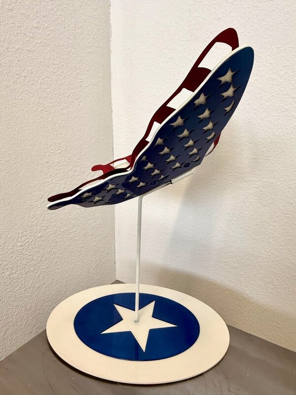 Inspired by being a proud American - Todd has been creating art for many years using a number of different mediums including paint, fabric and fibers, beads, found objects, tile, mosaics, and most recently metal. Her passion is to accept the challenge of using different techniques and mediums to produce original art pieces with creative beauty. Her art pieces have been displayed in exterior garden spaces, galleries and in private collections. Her inspiration comes from the beauty of nature. Nature's mix of beauty, colors, movement, and textures motivates her to generate pretty art pieces.