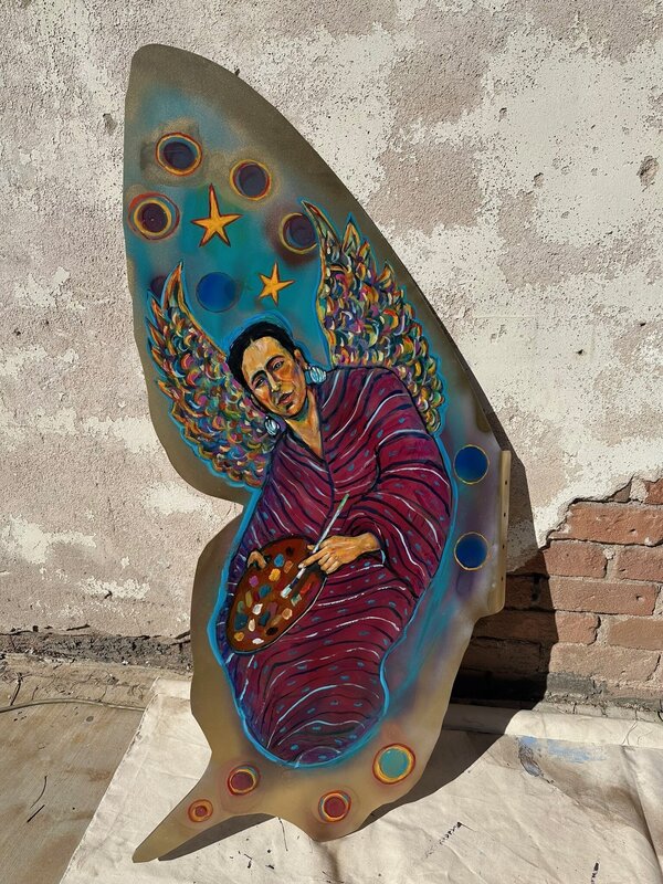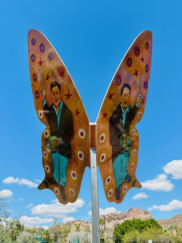 Inspired by the real woman Freida Kahlo, who was good friends with his aunt, and Diego Rivera. Jim Covarrubias is a native of Kingman, AZ, BFA and MFA from ASU. CEO of Ariztlan, Inc. Director and Curator for La For Del Pueblo, a mural project for APS featuring the history of Grant Park Neighborhood on the walls of APS's Substation in Grant Park. Jim is profiled on the Phoenix Art Museum website under the Community section titled In his own words. His studio is located at the Icehouse, 429 W. Jackson, PHX 85003. He is the author of a Native- American opera, Kokopelli the Legend, and was Arts Editor for the Veterans Magazine and Indian Country Today. His movie trailer, Sage Woman- movie trailer is available on You Tube.