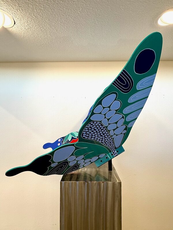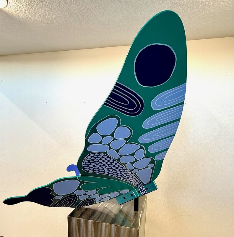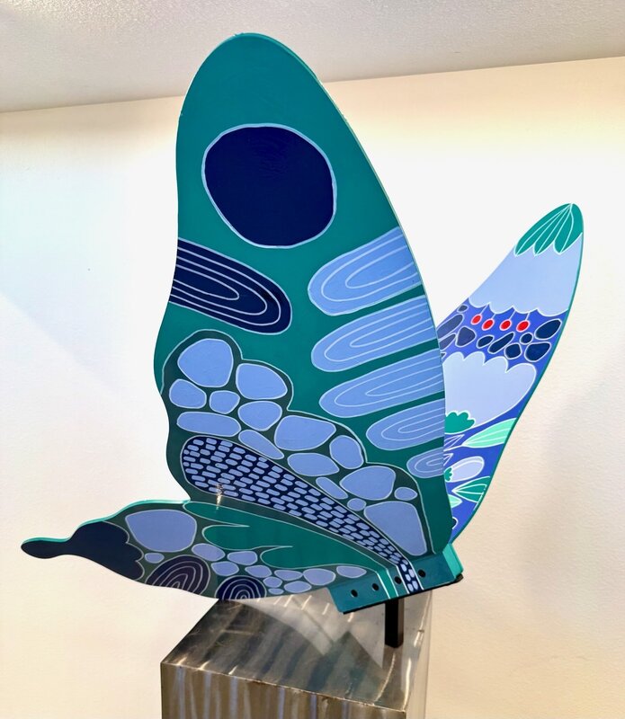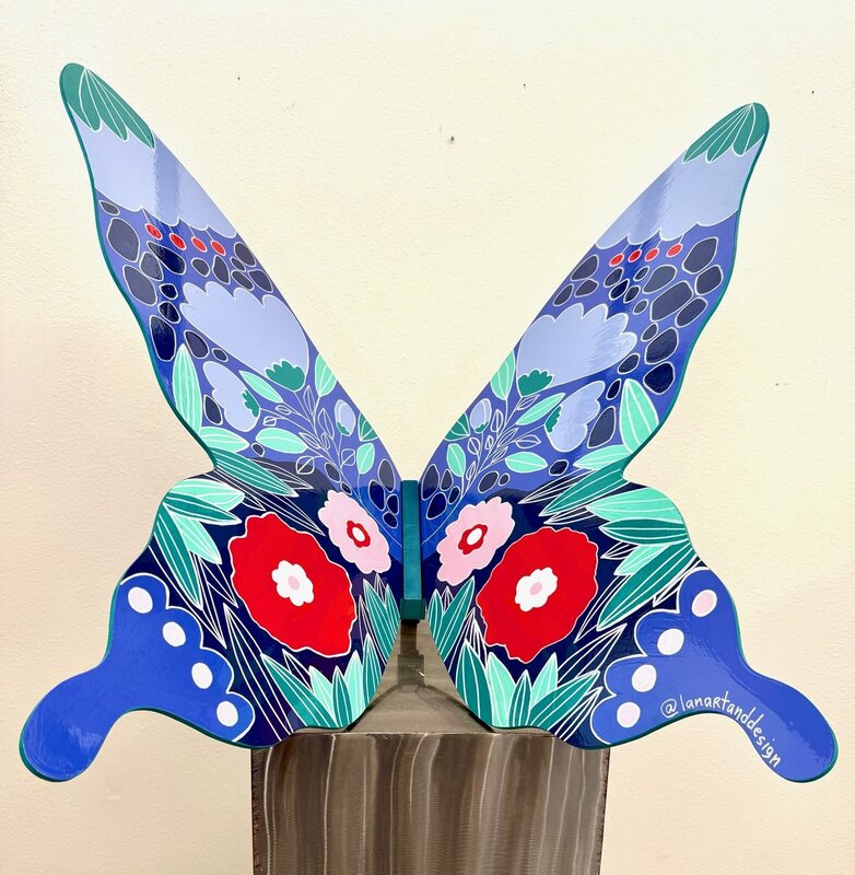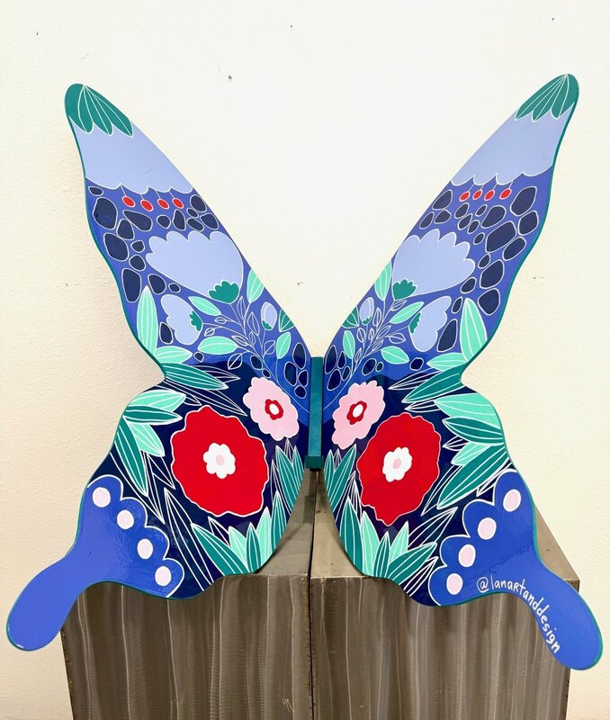 This butterfly explores the idea of balance as a living, evolving state. Through mirrored forms, flowing botanical patterns, and a restrained yet vibrant palette, the piece reflects the harmony between logic and intuition, strength and softness. The symmetry suggests mental clarity and inner alignment, while organic details introduce movement, growth, and transformation. Created as a symbol of poised change, the butterfly becomes a reminder that elegance emerges not from perfection, but from equilibrium in motion. Lana is an artist originally from Ukraine who moved to Phoenix in 2018 to pursue her passion for art. Specializing in paper collage and resin techniques, she has a deep love for mixed media, drawing inspiration from the natural world and her surroundings. www.lanartanddesign.com