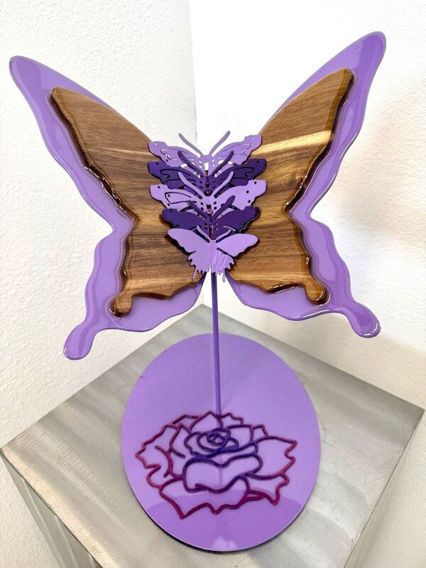 Inspired by using different types of exotic wood for the butterfly wings. After retiring, Bonnie finally had the time to spend rekindling her desire to do different arts and crafts. She found her niche with woodworking. The textures and colors of wood inspire her creativity. Then along came the addition of adding resin with her woodworking. Working with two different mediums is always exciting because the results can vary from project to project. It makes her look at things differently.