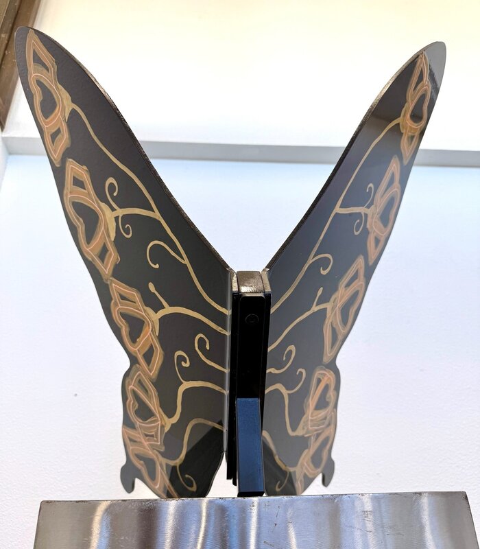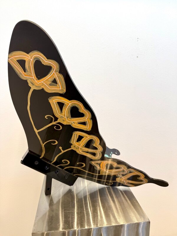 A neon Southwestern butterfly bursting with birds of paradise, roses, and glowing floral patterns. Glow-in-the-dark elements give the piece a luminous desert-night energy, celebrating transformation, growth, and the vibrant spirit of life. As a locally born and raised Arizona artist, Tonya finds painting to be a form of meditation that allows her to be present in the moment and mindful of the world around. You can often times find her hiking and painting outdoors next to a cactus.