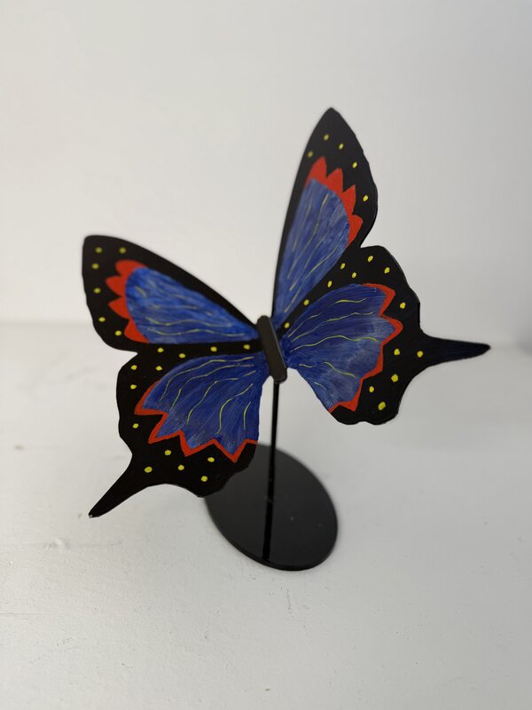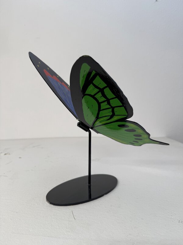 Inspired by the blue Papillo Ulysses butterfly of Indonesia and the green Ornithoptera Priamus Poseidon from New Guinea. Imago is the adult stage of a butterfly or other insect. It also represents an unconscious representation of a love developed in childhood.