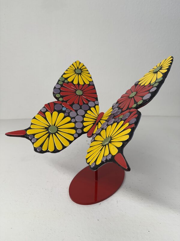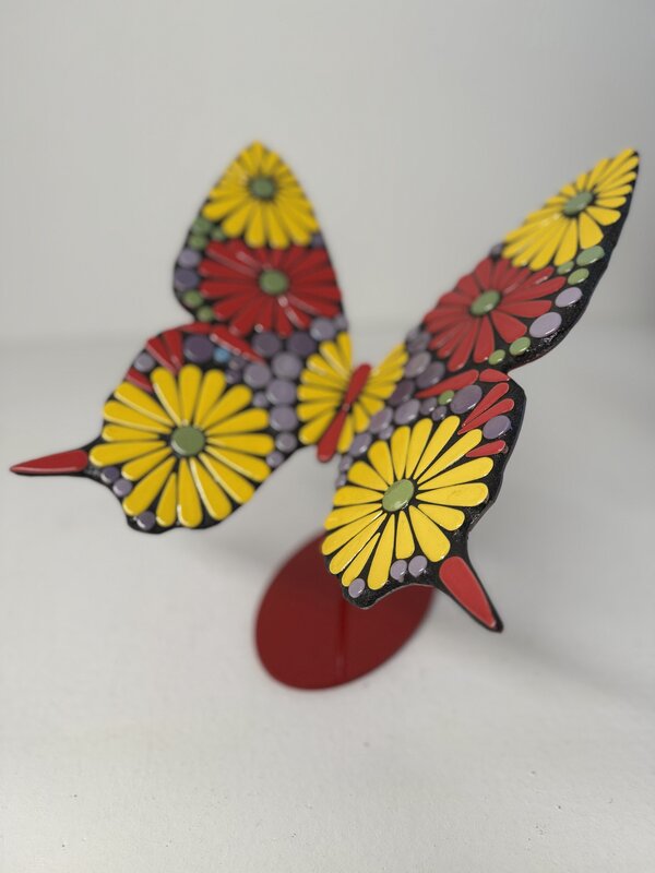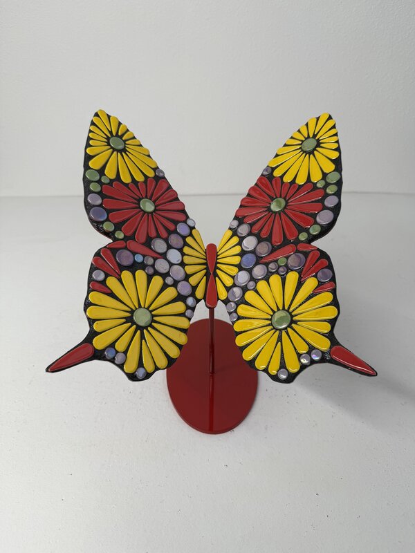 Inspired by the essence of Spring, a season that embodies renewal and the promise of new beginnings. Just as flowers bloom and flourish in diverse environments, my mosaic butterfly symbolizes the potential growth and transformation in any circumstances. Each tile thought imperfect and distinct, contributes to a unified mosaic that tells a story of resilience and beauty. This reflects the idea that our individual experiences sometimes fractured, can create a powerful and cohesive narrative when viewed from a broader perspective. Just as these tiles fit together to form a butterfly, we too can find strength and purpose in our unique journeys, celebrating the beauty in our complexities.