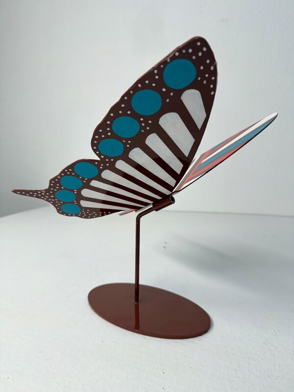 Inspired by the balance between tradition and transformation. The earthy clay tones, vibrant teal, and coral reflect nature’s beauty and cultural roots. One side’s structured patterns symbolize strength and unity, while the dynamic stripes on the other represent movement and growth. This piece represents the harmony of stability and change, celebrating resilience and grace.