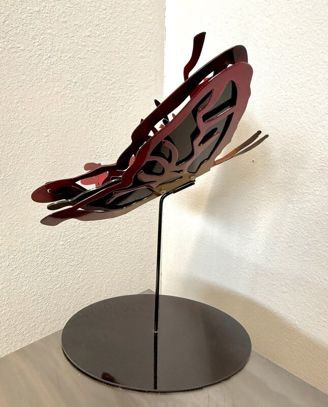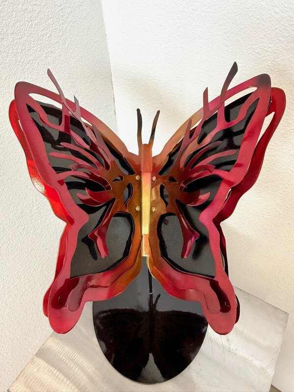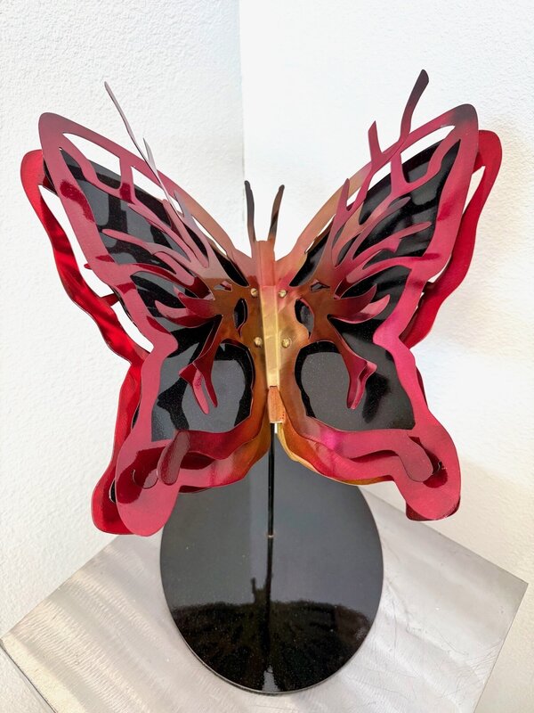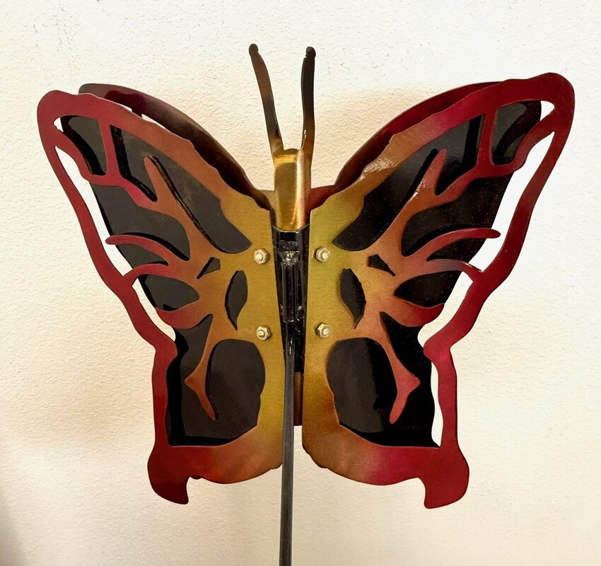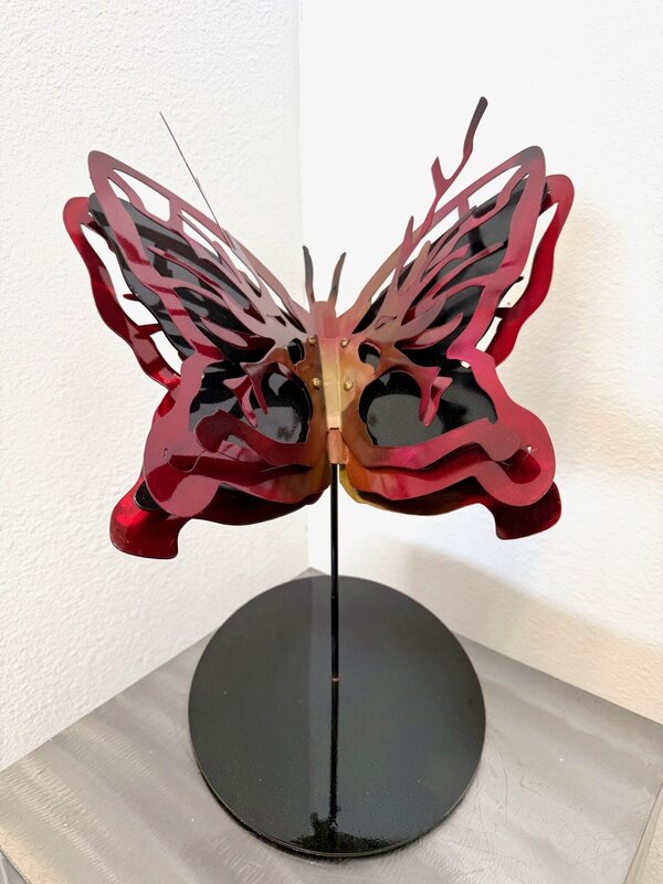 Flight and flame became metaphors for the acts of movement and change required to leave being unhoused, food insecure or housing insecure behind. Advancing as a butterfly or a flame is never the same exact journey. So is the journey out of homelessness - never exactly the same. For each person the flight out, or the flame to succeed, brightens and dims, and sparks up at a different location and burns or flies steadily for a while, until it changes again. Lori Province never picked up a piece of sheet metal until after her retirement from 40 years handling benefits and training for Washington's workers who lost their jobs. Raised on a farm where all the 'traditional' arts were part of her portfolio (baking, canning, sewing, quilting), when she retired to Sun City in 2016 and was looking for something different, Lori found it in the Bell Metal Club. Lori also has a link to her local Washington Rotary and many personal experiences working with the unhoused, precariously house, and food insecure individuals. "It feels right to help our neighbors in the new home as well," says Lori. This is her second year of participating with Phoenix Rotary 100 and Take Flight!
