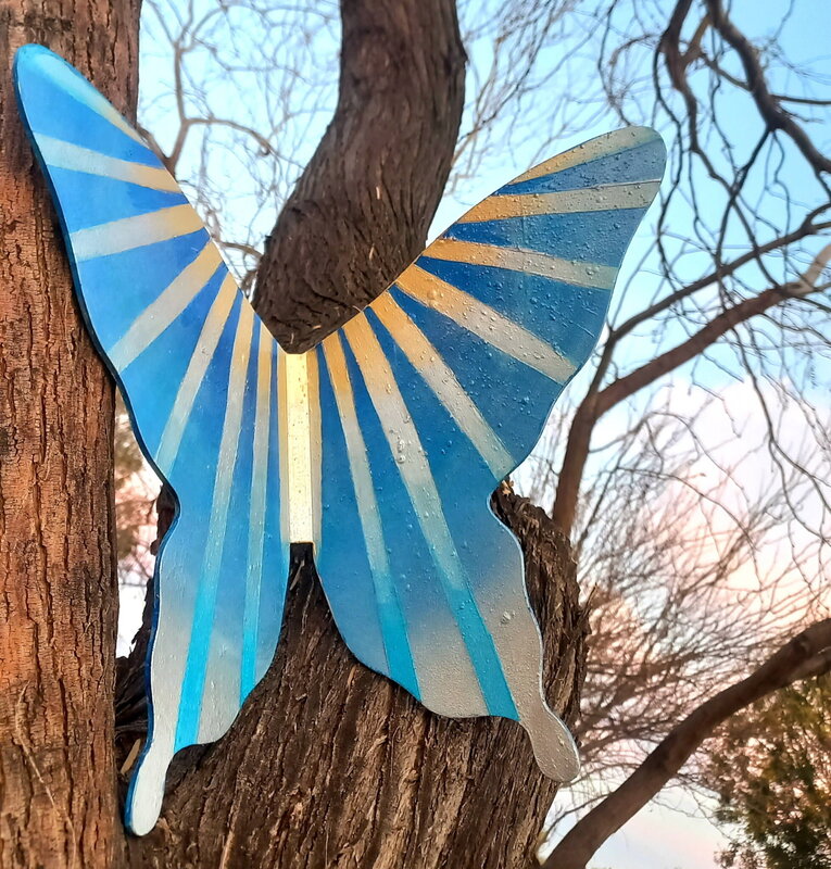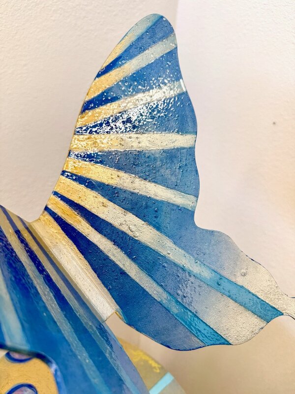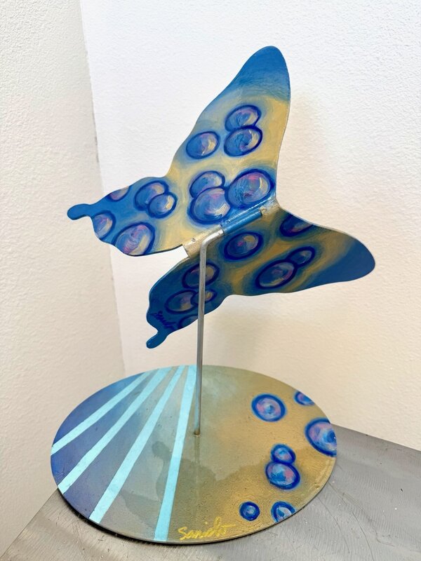 Inspired to make designs using different colors and themes than the previous years. Alisson hadn't done much with blue, and lately discovered she liked painting bubbles. She liked the metallic effects from the first year with "American Beauty" and chose to invent an underwater/surface design incorporating those elements. Flare incorporates a graphic design that looks like sun rays. The fun part of these projects is the unplanned steps encountered that result in methods she normally wouldn't use in other painting projects. Alisson really enjoys experimenting and appreciates the flexibility given that allows exploration. Born and raised in St. Petersburg Florida, my artwork is greatly influenced by beautiful skies, the ocean and nature. I earned my BFA in illustration at Arizona State University. My artwork has been featured for almost 15 years at the Art Expo Gallery on St. Petersburg Beach and in group exhibitions in Lima, Peru and Phoenix, Arizona. I offer commissioned work through social media. Most works are oil or mixed media on canvas; sizes range from over 4 feet to 10 inches.