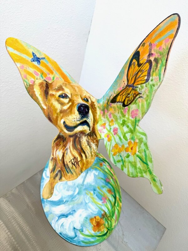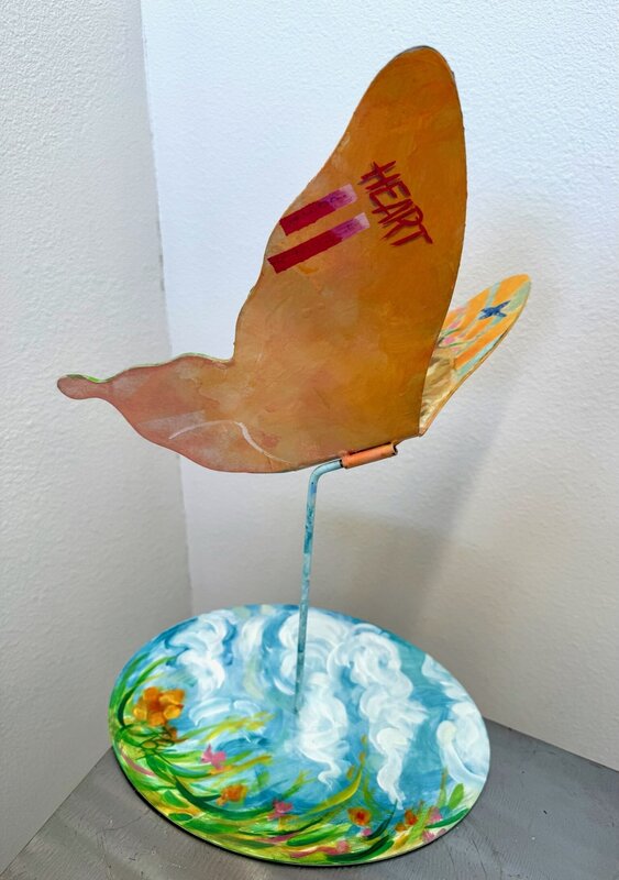 Inspired by the song this butterfly is a tribute to the rock band Heart. As 4th generation artist, Russ had a love of art at an early age, painting in Taos and Santa Fe. Growing up in New Mexico during the creative cultural history of the 60s, he was further influenced by art instructor Frank McCulloch (considered the father of New Mexico arts) who explained that art was about self-expression. Due to McCulloch’s impact, Russ was drawn to teaching art and moved to Colorado in the early 70’s, where he received a BS in commercial art. Living in San Francisco his art grew at the Institute of Art, creating works of art for notable musicians such as Carlos Santana, Herbie Hancock and John Paul Jones. Eventually moving to Arizona where Russ has participated in various workshops, art festivals, coffee house installations and juried shows, selling many works to private collectors. Currently, along with painting, Russ is an art instructor for the City Of Tempe, ASU Emeritus Collage, teaches private classes, is a speaker, as well as holds demonstrations/workshops. Recently, a work was honored with First Place in Landscape Paintings. www.RBAart.com