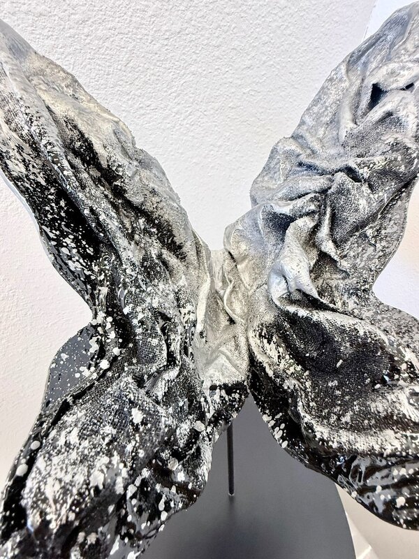 Tu es Jolie is inspired by the unlimited possibilities of reinvention that are within each and every one of us, and the power of self-renewal with self-belief. This piece is finished with fabric remnants otherwise heading to landfill that have been reimagined as a ruffling top layer, adding value and luxury- and a reminder that second chances and the potential for such transformation are available to you too. Laura Madden is a self-taught mixed media artist based in Phoenix, Arizona. Originally from Boston, Massachusetts, she reimagines reclaimed materials and found objects—items that might otherwise be dismissed as disreputable or disposable—as the foundation of her artistic practice. In 2019, she made the decision to pursue art professionally after recognizing it as her true life’s calling. Madden’s creative path began with a Bachelor of Science in Kinesiology and Physiology from the University of New Hampshire, where she graduated summa cum laude. She spent 15 years working in the fitness industry before transitioning into sustainable fashion—a field that continues to inform her work. Drawing inspiration from her passion for the environment, design, and the intersection of beauty and sustainability, Madden creates layered, textural works that are both elegant and evocative.