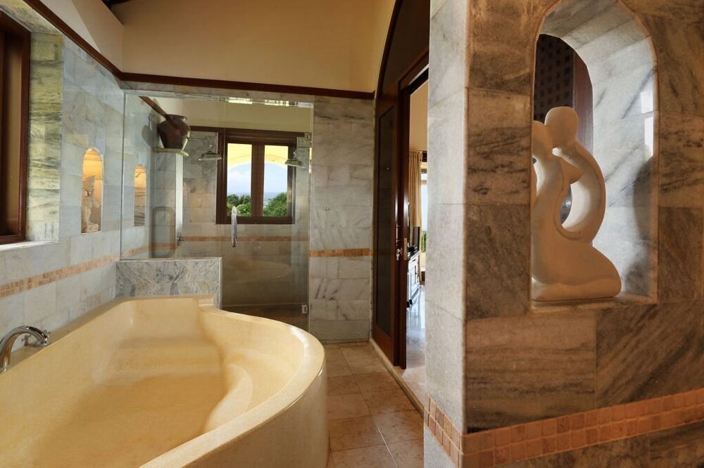 Experience a luxurious 7-night getaway in Bali, nestled along the eastern coast in exquisite one-bedroom villas. Your stay includes airport transfers, welcome drinks, daily breakfast (choose between authentic Balinese or classic American), rejuvenating Balinese massages, and thrilling scuba dive sessions. Immerse yourself in the beauty of Bali with shared access to the main villa, a recreation villa boasting fitness equipment and a hand-carved billiard table, outdoor dining pavilion, spa retreat, and an infinity pool with a swim-up bar. Don't miss out on exploring Bali's rich culture, from visiting ancient temples like Lempuyang Temple to indulging in traditional Balinese dance performances and savoring the island's renowned cuisine.
