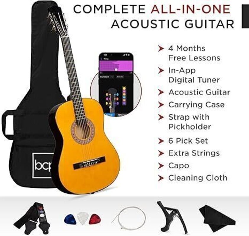 Complete starter kit with accessories like a gig bag and picks - perfect for beginners of any age to start playing guitar easily. It's a popular product!