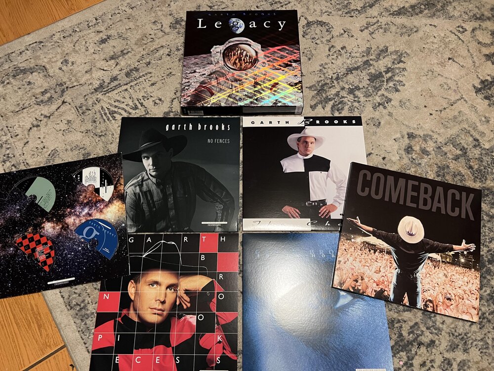 Garth Brooks' "Legacy" record refers to his major 2019 vinyl box set, The Legacy Collection, which was the first time his catalog was released on vinyl, featuring remastered versions of hits from albums like No Fences, The Chase, and In Pieces, alongside live recordings, available in multiple numbered, limited-edition formats for collectors. It was a significant release, making his classic albums accessible on vinyl with premium sound quality, celebrating his iconic career.