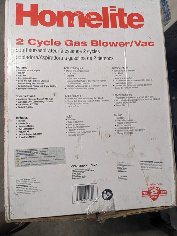 You have a lot of choices to make when you're looking for a good gas blower. Homelite makes the decision a little easier with the Homelite 2-Cycle Gas Blower: a perfect combination of value and performance. The powerful 26cc engine delivers speed up to 150 MPH/400 CFM and the quick-fire starting system lets you get the engine started fast with fewer pulls. This gas blower weighs less than 10 lbs. so you can enjoy the benefits of gas power with less fatigue. Also featuring an easy-to-use variable speed throttle at the handle, air speed is completely under your control. All backed by a 2-year warranty, the Homelite 2-Cycle gas blower is ready to take on the season.